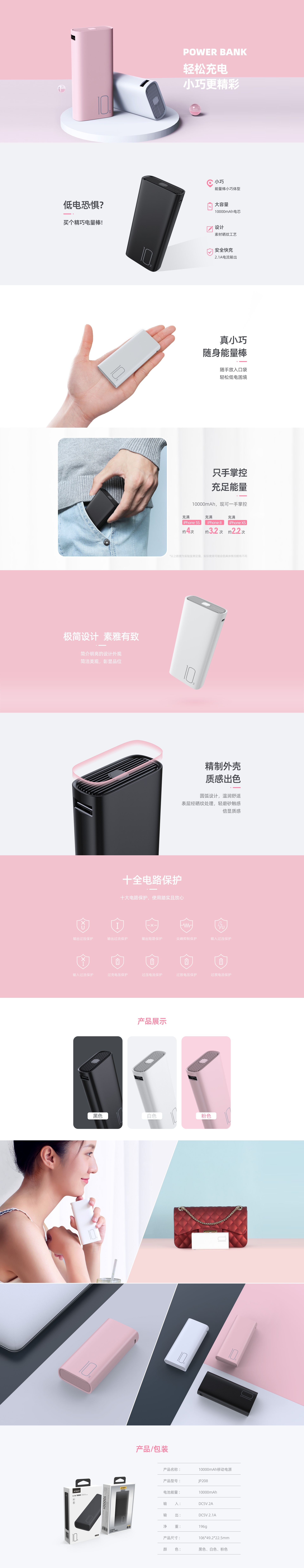 | 颜色 | 黑色、白色、粉色 |