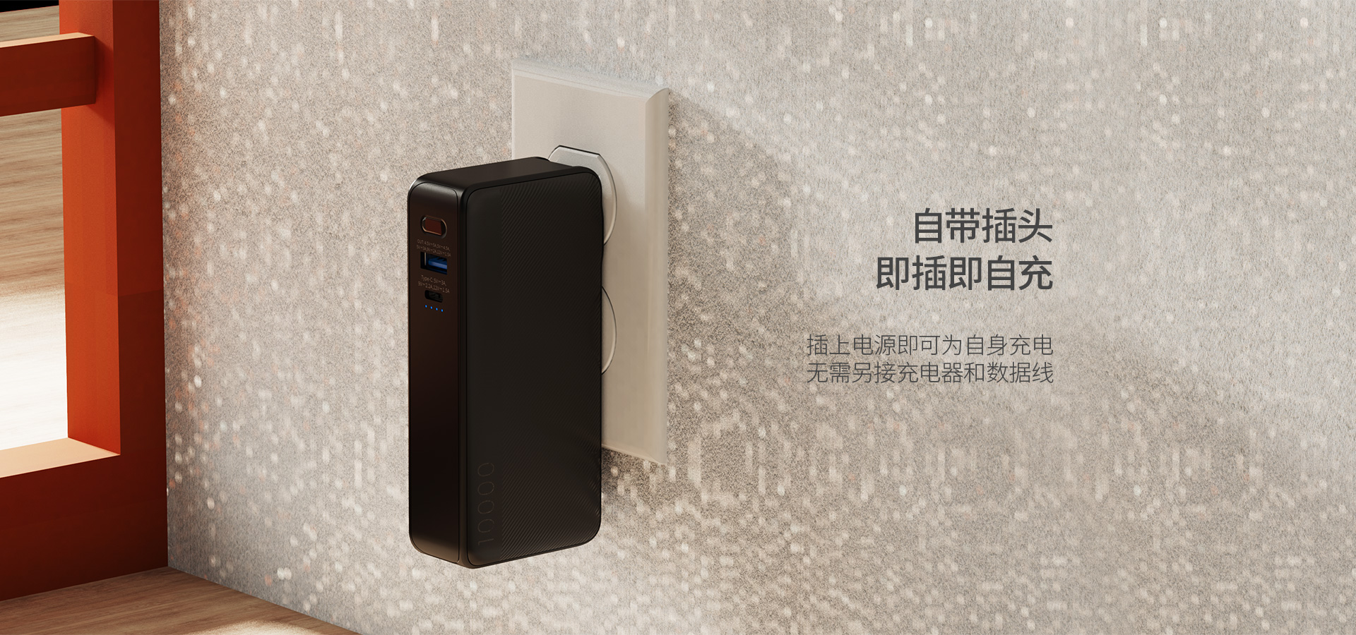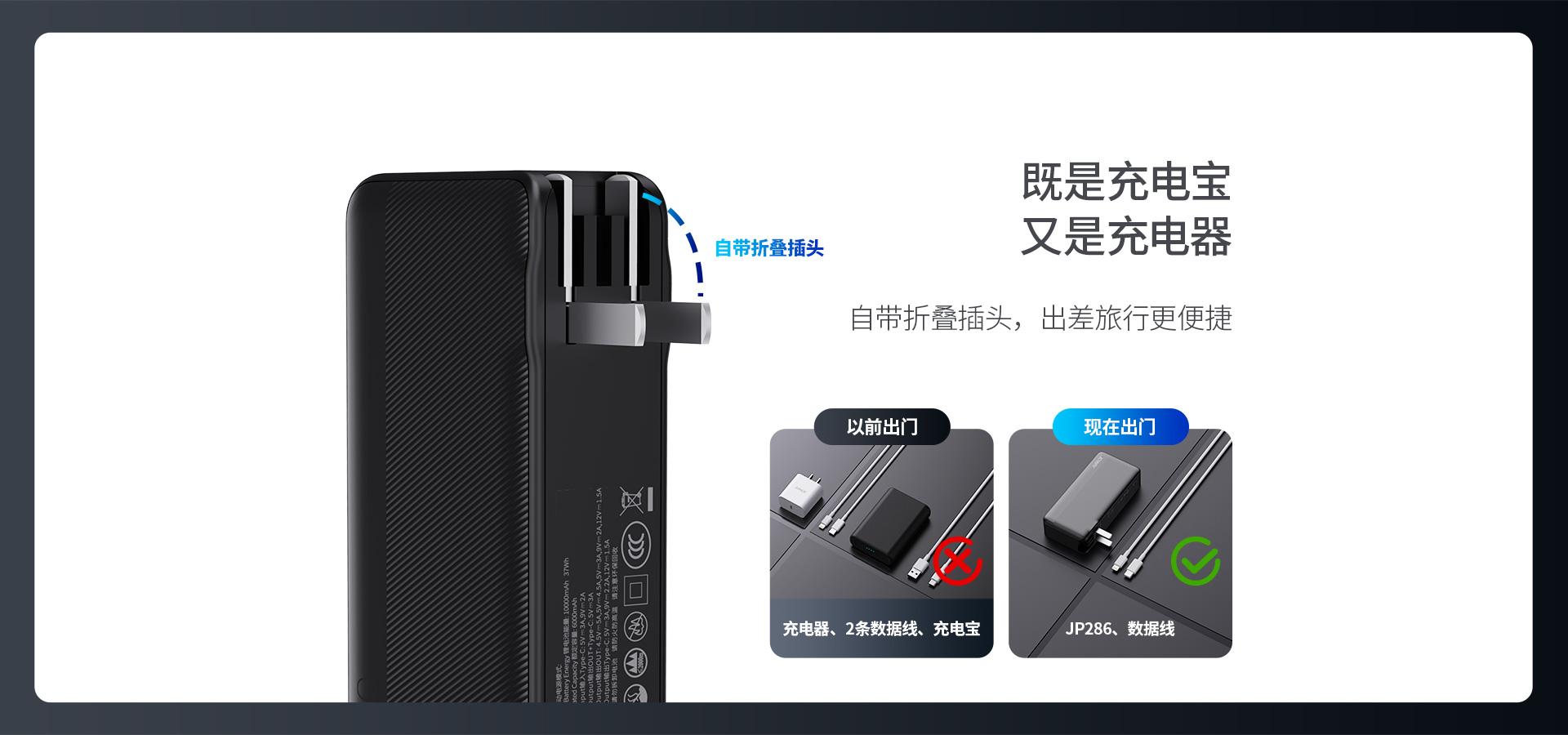 | 产品名称 | 自带插头快充移动电源 |