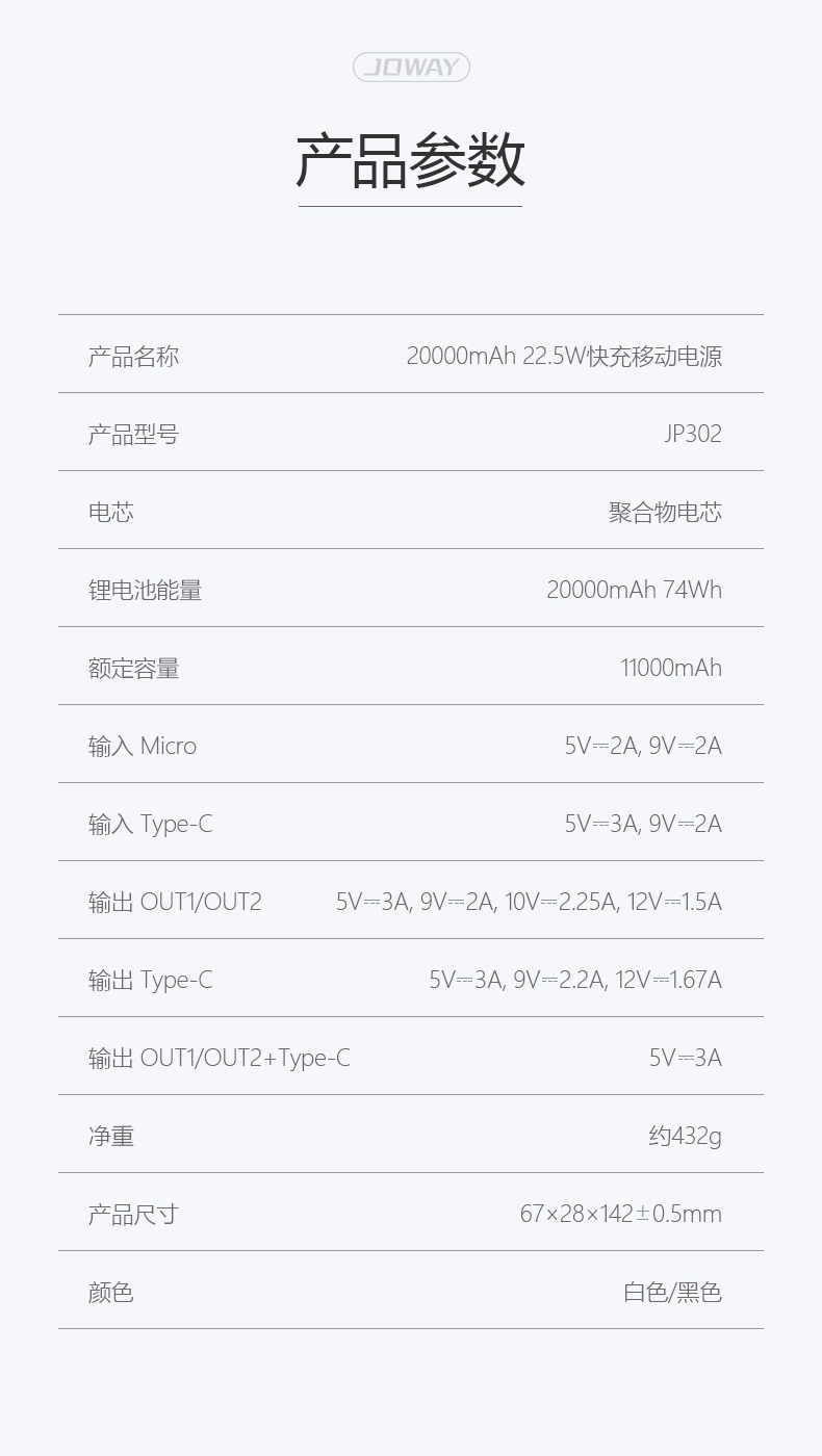 | 产品名称 | 20000mAh 22.5W快充移动电源 |