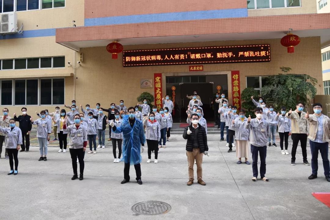 公司扎实开展疫情防控工作,把防控要求传达到每一位在岗员工,督导各岗位人员勤洗手、多消毒、常通风、戴口罩、不聚集,做细各类防范工作。另外,加强对员工的疫情宣传工作,时刻关注员工的健康状态。在得到上级正式通知之前,依深圳市政府发布标准,重点疫情区域的员工禁止进入公司。及时宣传各权威媒体发布的防控信息与知识,引导员工增强防护意识,提高防护能力。公司配备了口罩、一次性手套、防护塑料雨衣护目镜副,体温检测仪、消毒液等防护用品。