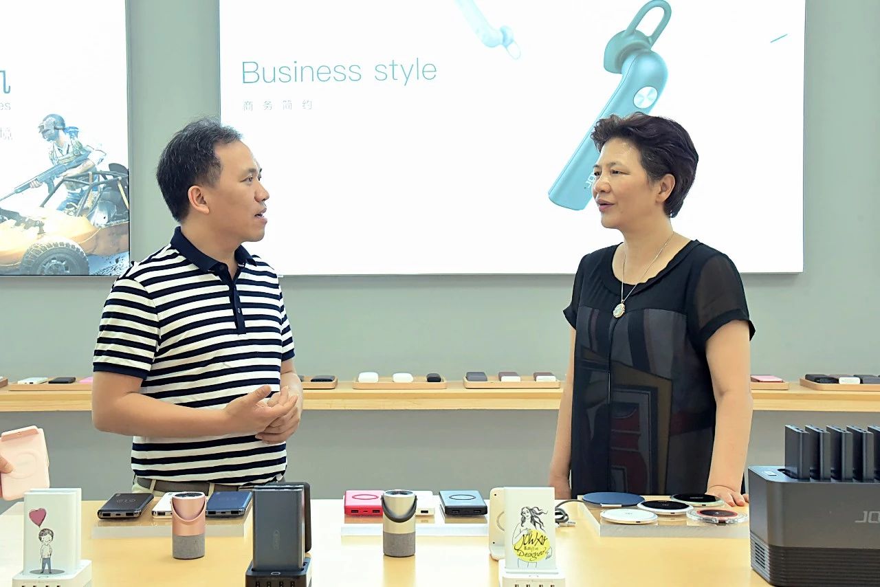 乔威总裁赖庆首先对宝安区、沙井街道领导的到访表示热烈欢迎,并陪同领导参观了OEM展厅。参观中,宝安区人大常委副主任刘红瑛认真观摩了乔威的产品演示,详细了解了乔威的发展历程,对乔威扎实的研发、务实的工作作风及创新的新零售模式给予了高度评价。