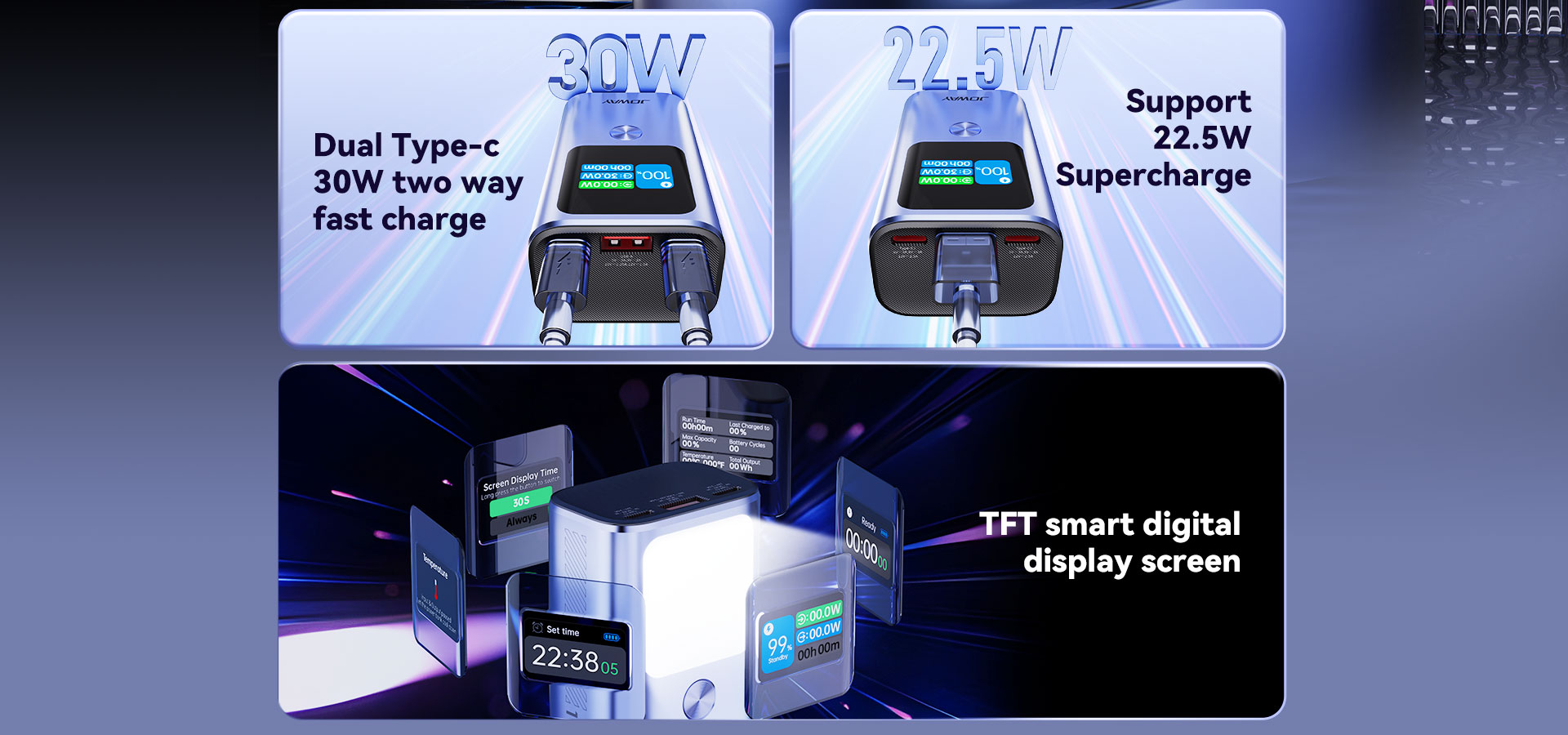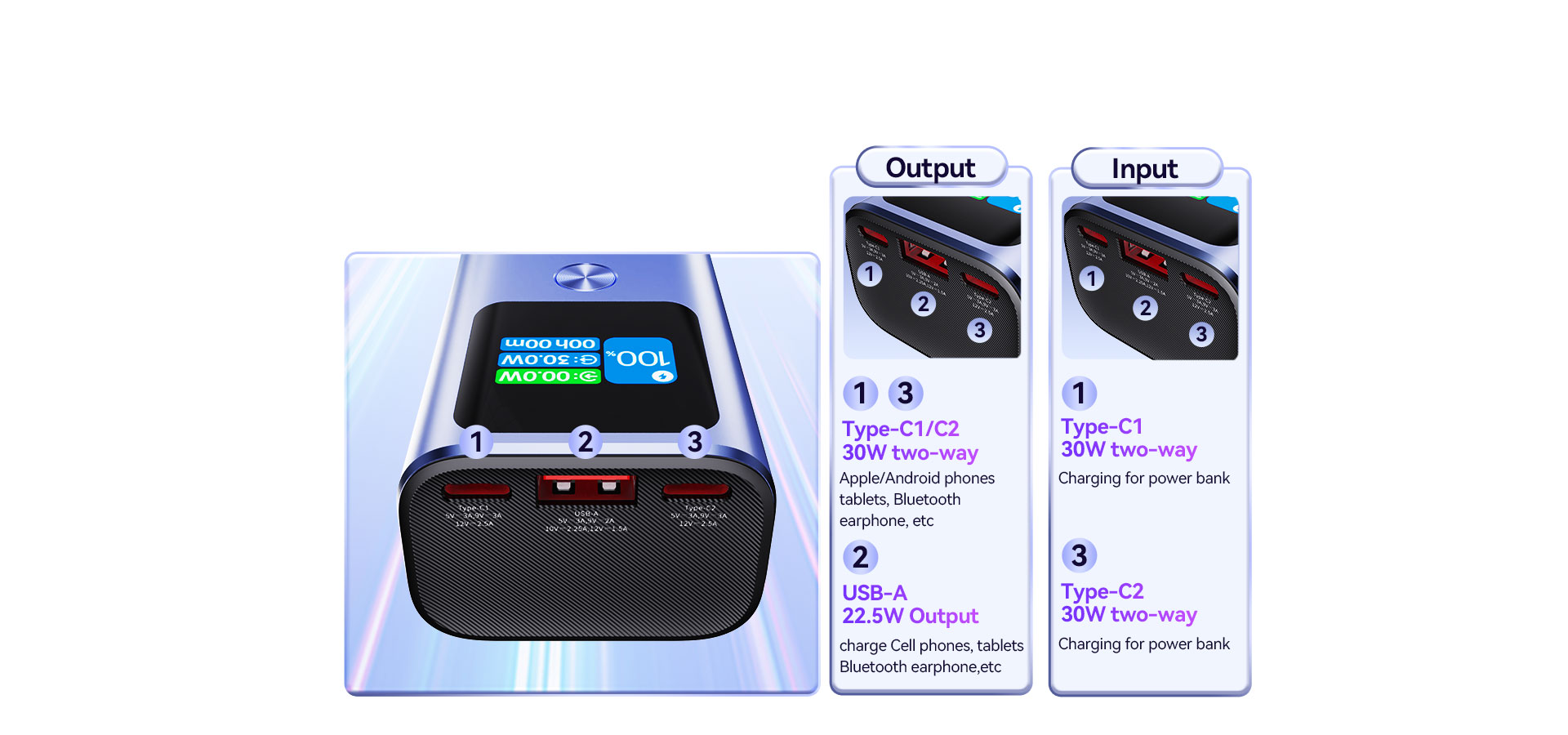 | Type-C1+Type-C2+USB-A Output | 5V⎓3A |