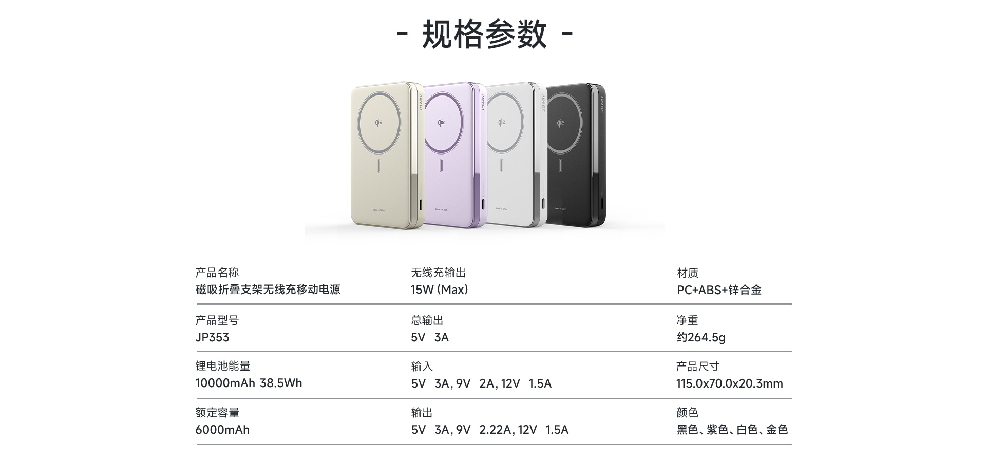 | 产品名称 | 磁吸折叠支架无线充移动电源 |
