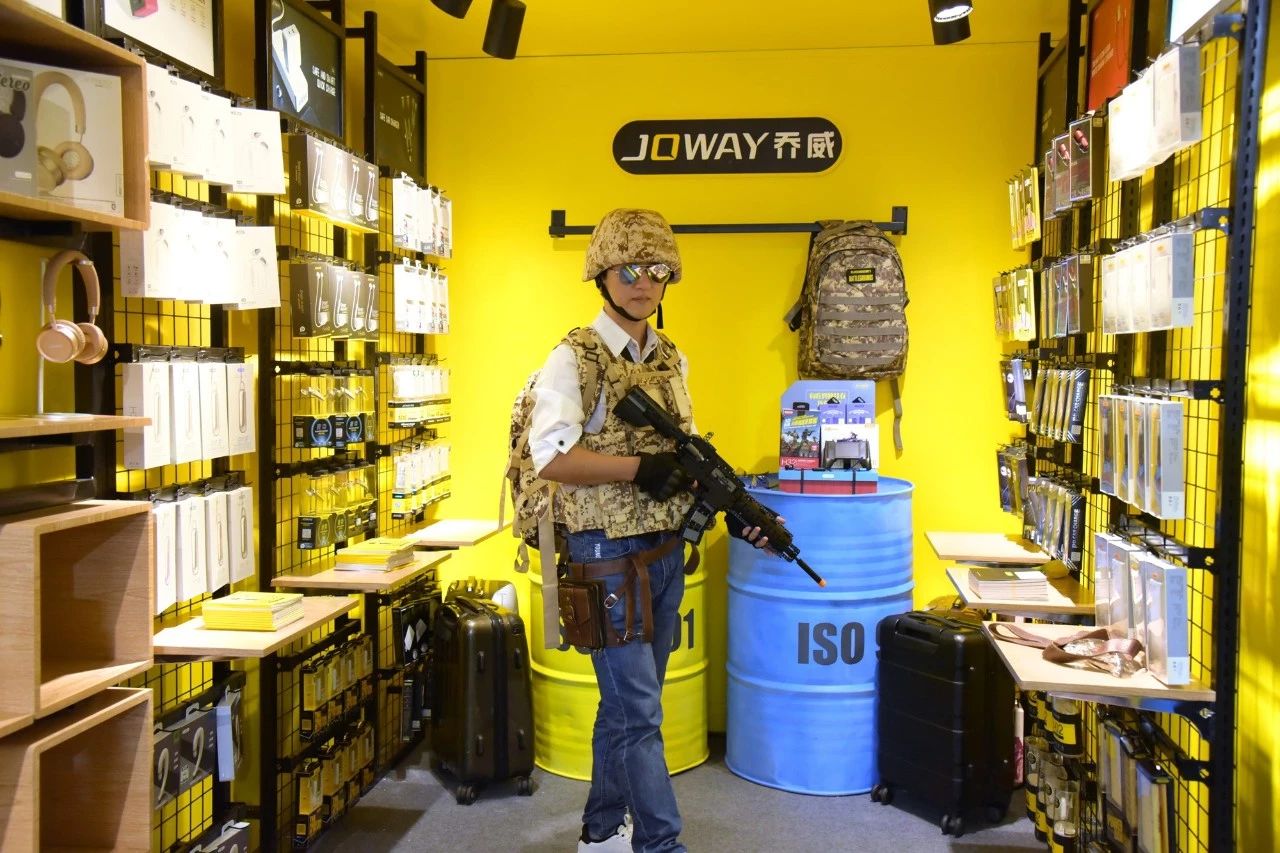 乔威的展台非常引人注目,一举拿下了展位最佳设计奖。乔威展台就像一个吃鸡游戏
