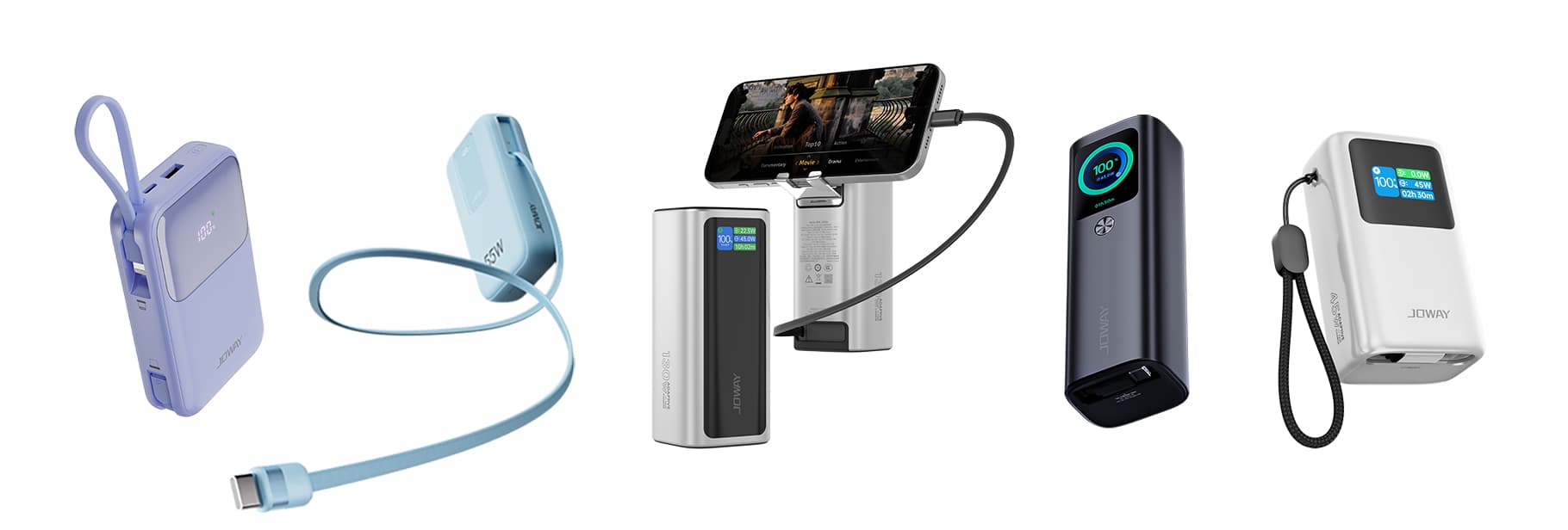 由于电子设备多,各种数据线一大堆,普通充电宝需要自备充电线,经常会容易找错线,导致接口不匹配、快充协议不支持等,而自带线充电宝已解决了这些问题,拿起来直接就可以快充!