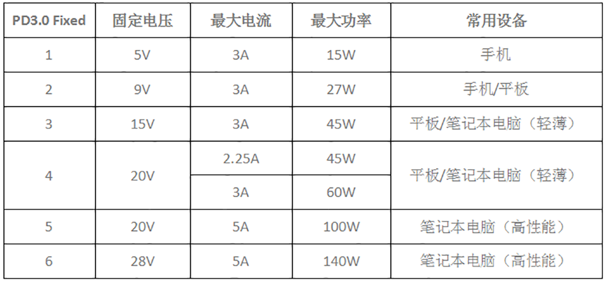 所以,一个设备支持PD 3.0,可能只是支持PD 3.0固定档,不一定支持PPS ;但一个设备如果支持PPS,它必然已经支持了PD 3.0的固定档位,兼容性非常好。表2:PD3.0 Fixed(固定电压)标准输出档位