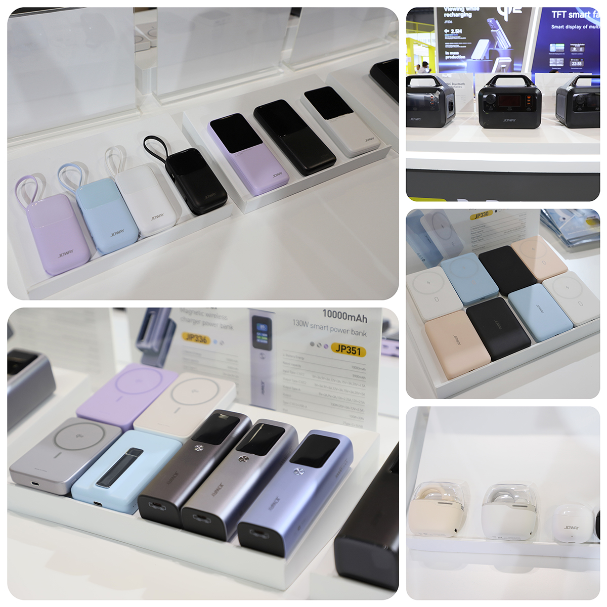 乔威在此次展会上展出了一系列令人瞩目的新品,如Qi2 15W无线充移动电源、TFT彩屏智能快充移动电源、OWS开放式蓝牙耳机、自带快充线移动电源、多功能磁吸充电宝以及便携式储能电源。产品不仅在外观设计上融合了时尚元素、迎合了现代人对美学的追求,更在功能上满足了市场的多样化需求,并采用了行业领先的技术,引领市场新潮流。